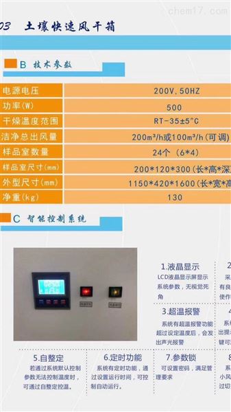 简要描述:土壤干燥箱采用模拟室内空气流动模式,即风干模式进行土壤的干燥。土壤干燥箱具有洁净,避免样品交叉污染,省时,省力,节省空间,提高土壤干燥效率等特点。